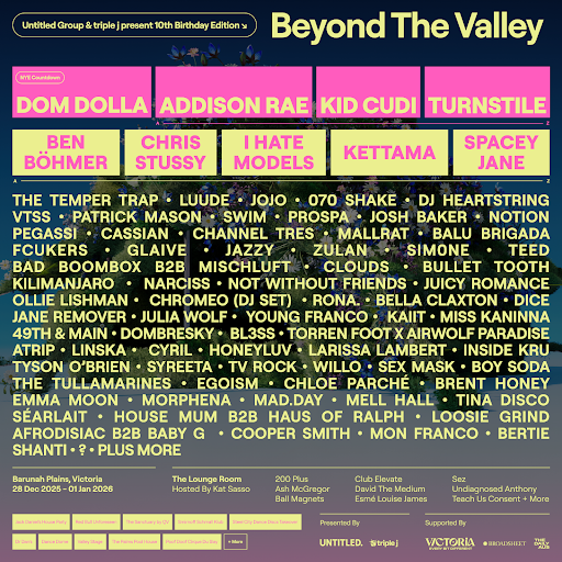 Presented by Untitled Group and triple j, and supported by Visit Victoria, Beyond The Valley has set the standard for world-class music and festivals in Australia, uniting tens of thousands each summer across four days of unforgettable music, distinctive stage designs, and unparalleled festival experiences.